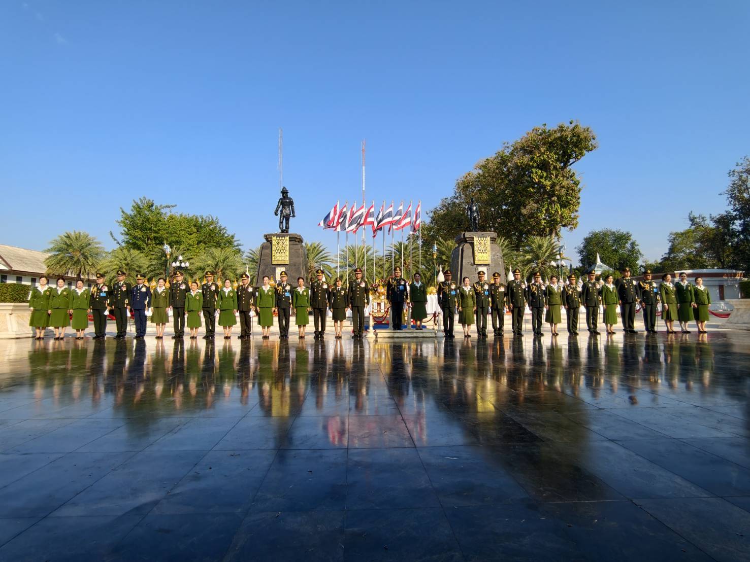 เมื่อวันที่ 18 ม.ค. 69 พล.ต.สมใจ คิดเกื้อการุญ ผบ.พล.พัฒนา 3 พร้อมด้วย คุณรุ่งลักษณ์ คิดเกื้อการุญ ประธานสมาคมแม่บ้าน ทบ. สาขา พล.พัฒนา 3 ร่วมพิธีวางพานพุ่ม และพิธีบวงสรวงถวายสักการะพระบรมราชานุสาวรีย์สมเด็จพระนเรศวรมหาราช สมเด็จพระเอกาทศรถ พระรูปพระสุพรรณกัลยา เนื่องในวันกองทัพไทย(วันกองทัพบก) ประจำปี 2569 เพื่อเป็นการน้อมรำลึกถึงพระมหากรุณาธิคุณ สมเด็จพระนเรศวรมหาราช ณ ลานพระบรมราชานุสาวรีย์ บก.ทภ.3